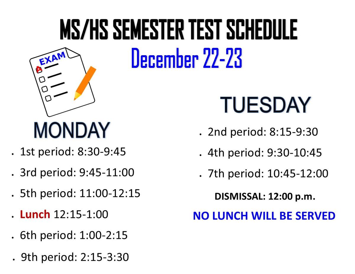 MS/HS Semester Exams Schedule